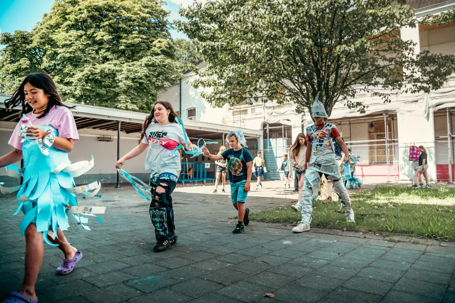 We dagen kinderen uit om na te denken over wat materialen kunnen betekenen – kan een stuk papier bijvoorbeeld een persoon dragen? Klei wordt niet alleen gebruikt om vormen te maken, maar om hele verhalen te creëren.